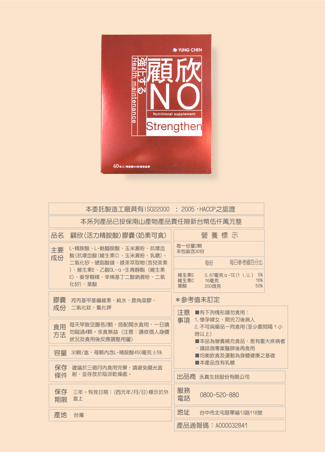 以一顆膠囊510mg的有限空間中,永真生技的複方精胺酸有效的將6大黃金配方,像L-精胺酸、L-麩醯胺酸、維生素C、維生素E、綠茶萃取物(含兒茶素80%)、葉酸等多種成分,以完美的比例結合在膠囊中,讓您只需吃一顆,就可以吃進多種功效。