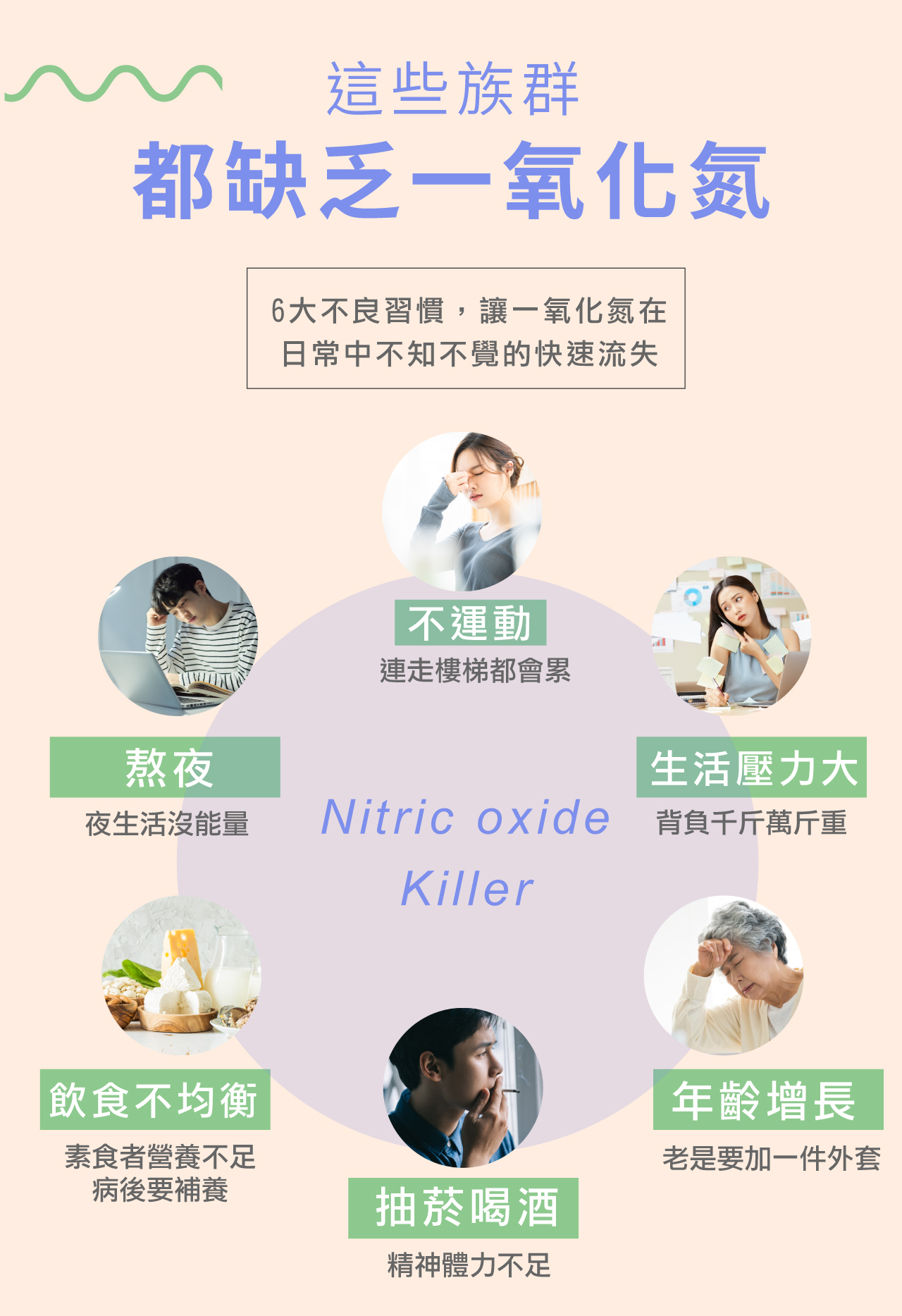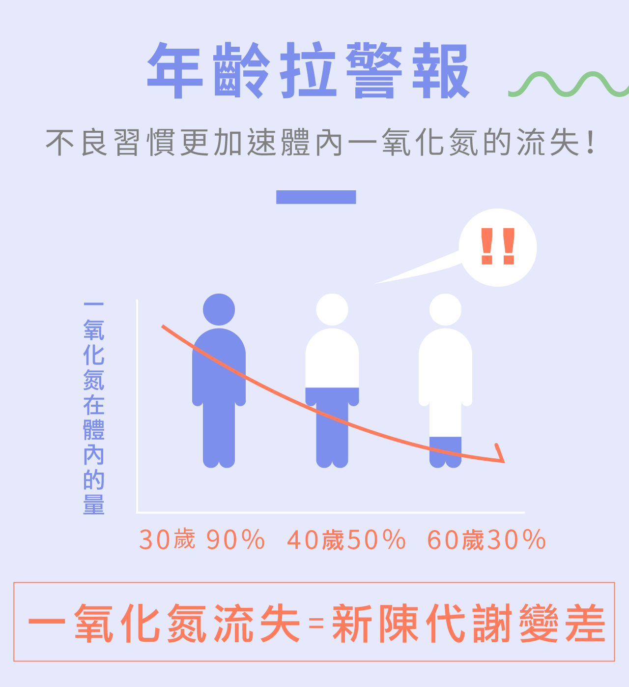 體內的一氧化氮就不知不覺從日常中快速流失掉,沒有足夠的一氧化氮來做為生體的健康維持。
